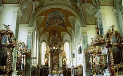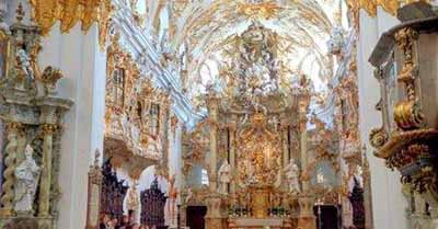 【老礼拜堂】:位于教堂南部的老礼拜堂的外观虽然简陋,但内部丰富的洛可可式装饰令人震惊。教堂的中心已有将近1000年的历史,中世纪时期为它增加了一座哥特式拱顶。